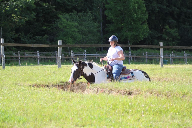 Bien mise sous la selle, avec du sang, Panda est une de nos meilleures monture de tête. Très confortable, endurante et courageuse elle est une excellente jument d'extérieur. Elle passe partout en randonnée. Fine dans les aides elle est agréable à monter.