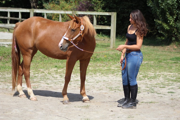 Très proche de l'homme, calme et serviable elle est adorée des petits et des plus grands! Extra en randonnée où elle passe partout comme un vieux cheval, reste froide en toutes circonstances, c'est une valeur sûre. Ekiona est montée par des débutants qu'elle met en confiance aussi bien que par des confirmés. Intelligente elle comprend vite ce qu'on attend d'elle.