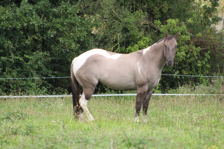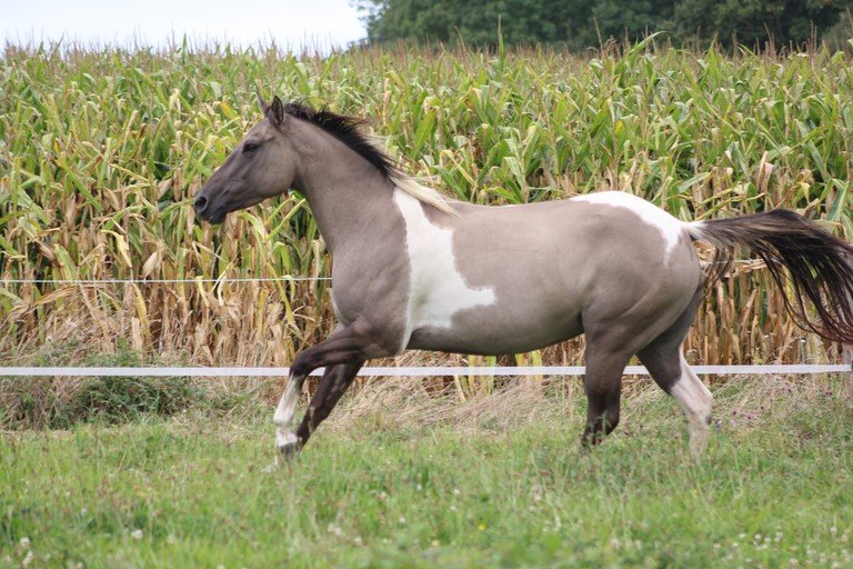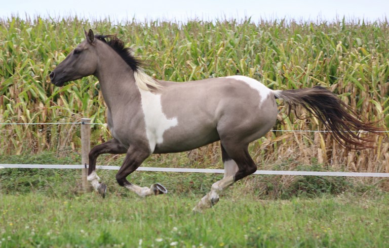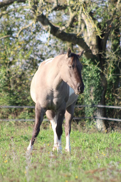 NOKOMIS PEPS PRIMROSE grullo tobiano triple homozygote par Pepsi Poco SmokeFokxy est une jolie jument proche de l'homme, née en Belgique.