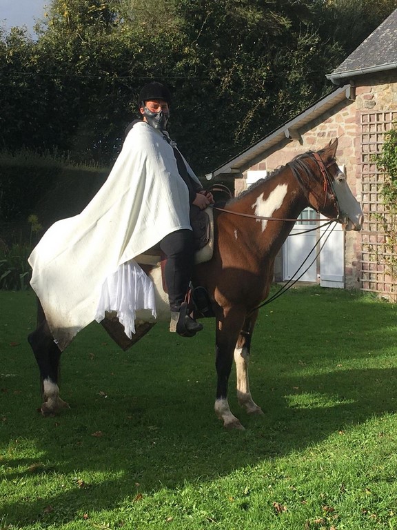 Débourrée au printemps 2019 elle se montre très froide sous la selle et facile. Placide en promenades elle ne s'émeut pas de grand-chose. De plus Framboise est porteuse!
