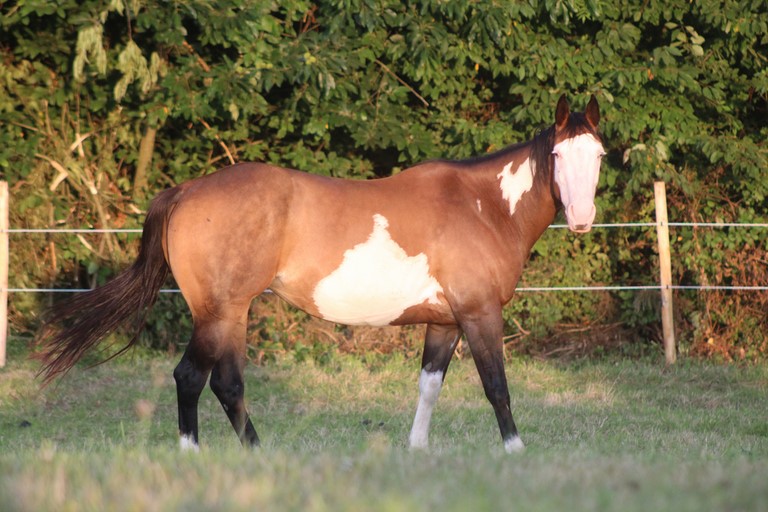 Framboise est une belle jument paint horse avec de nombreux points de force, un dos court et musclé, de bons aplombs, une belle arrière-main musculeuse, Framboise est très porteuse. Très gentille et proche de l'homme, avec une robe ovéro originale, une belle face et des yeux bleus, elle ne laisse pas indifférent quiconque la croise!