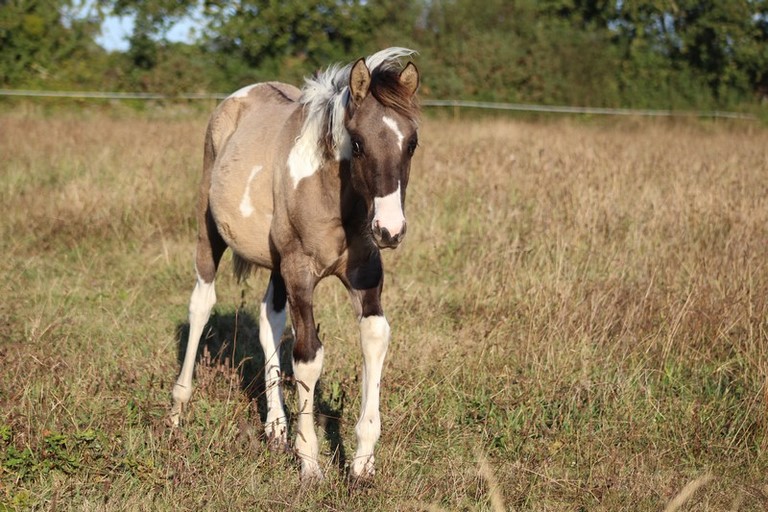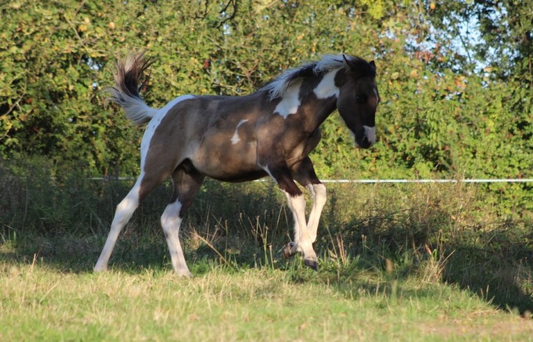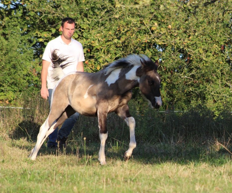 Idéal également comme futur étalon aux vues de ses origines et de son génotype, il sera l'assurance de poulains toujours tâchés, de base sombre et transmettra son gène dun (raie de mulet, zébrures, dilution de la robe) une fois sur deux.