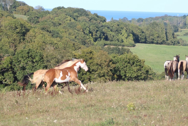 Très belle jument paint horse dotée d'excellentes origines: fille directe d'Heavy Duty Gun (propre fils de Gunner) gagnant du NRHA Las Vegas. De l'os, de la masse et de la taille, la miss devrait atteindre 1m55.