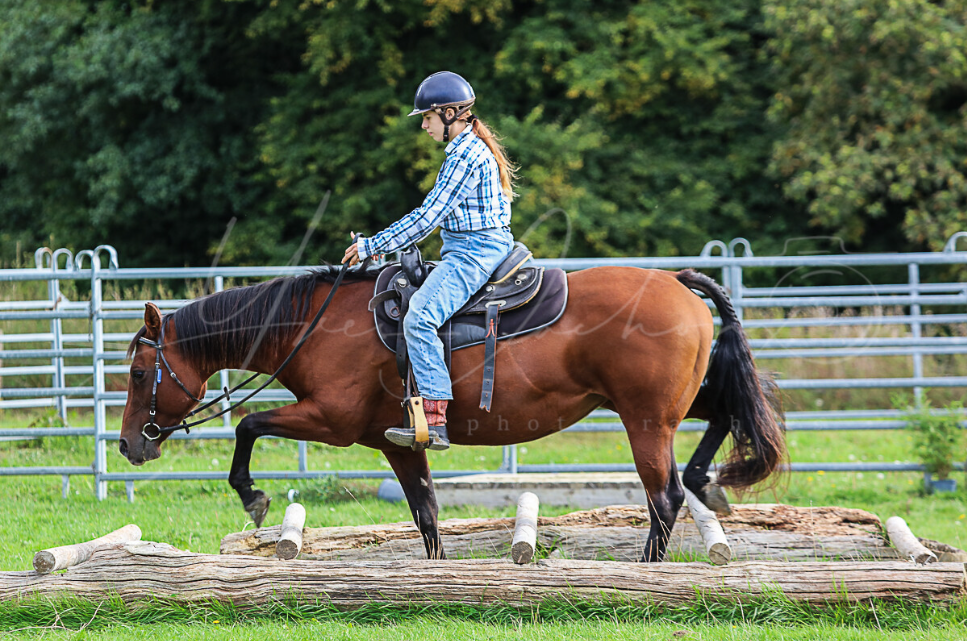 Chez nous, elle est utilisée au quotidien pour de l’instruction en carrière, le passage des galops, le Mountain Trail, ainsi que pour de belles randonnées en campagne et en baie. Montée aussi bien par des enfants que des adultes, même de bons gabarits. Très bien dressée, elle connaît les mouvements latéraux, se met facilement sur la main et se distingue par son extrême gentillesse à l’obstacle : elle pardonne les erreurs d’impulsion ou de trajectoire et met toujours son cavalier en confiance.