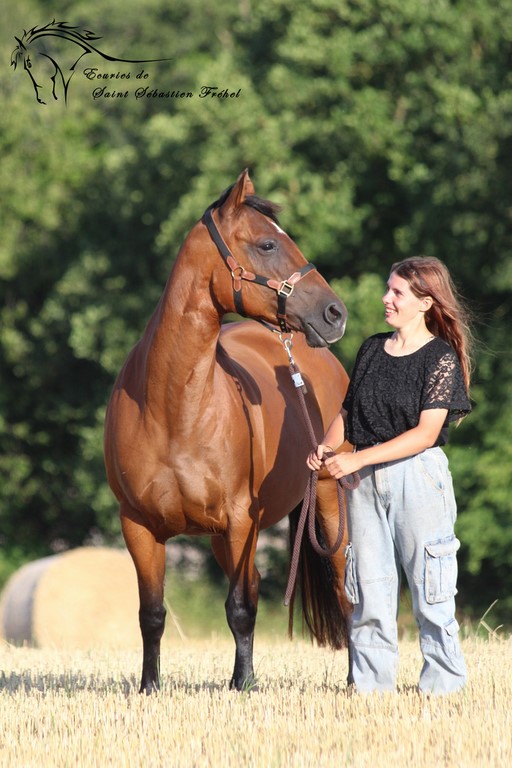 Elle convient parfaitement à un enfant débutant les parcours, à un ado, ou à un adulte souhaitant monter en toute sérénité. NJ toise 1m50, est très porteuse et peut être montée par toute la famille. Elle vit en troupeau au pré, est facile à attraper, respectueuse aux soins, et voyage sans souci en van comme en camion. Elle est ferrée aux antérieurs, à jour de vaccins. Panel 7 négatif, sauf n/GBED (porteuse saine, sans aucun impact sur sa santé ni sur une utilisation loisir ou sportive).