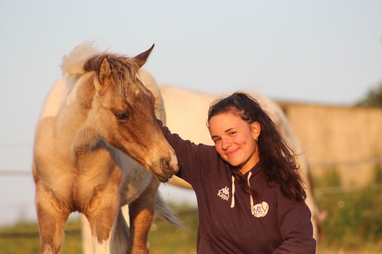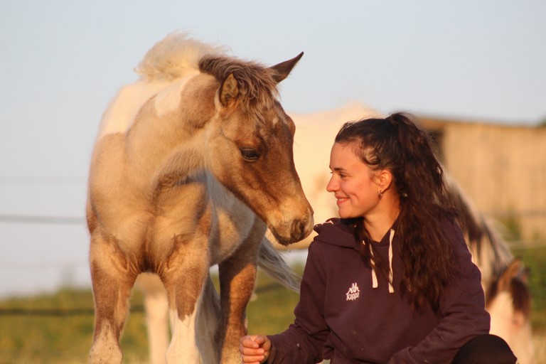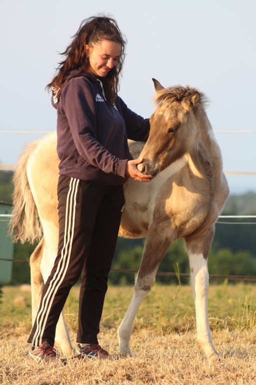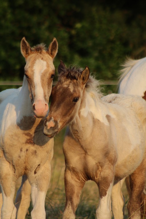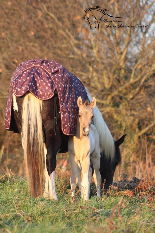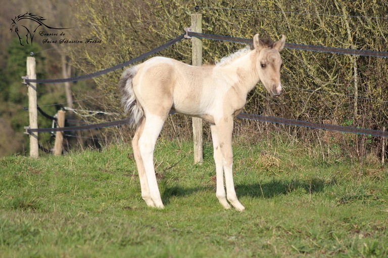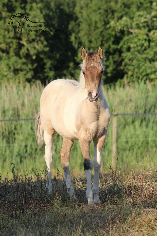 NUTS est une magnifique et adorable pouliche paint horse PP USA et France, née le 9 février 2023, de robe isabelle tobiano homozygote noire (test dun en cours) donc bucskin ou dusnkin. Sa maman est une paint horse black tobiano double homozygote de 1m50 au caractère exceptionnel, très froide, peu réactive, elle travaille dans un centre de tourisme équestre où elle promène les enfants de colonie de vacances depuis ses 3 ans et fait du Mountain Trail en compétition. Son père est notre étalon quarter horse 99% fondation perlino dun avec une solide morphologie, de l'os et un dos bien tendu, il toise 1m53. Peu farouche Nuts aime se faire caresser, elle s'éloigne de sa maman et aime aller explorer les environs. Elle sera idéale comme cheval de famille, de loisirs, pourra aussi être votre prochaine poulinière (j'ai gardé sa sœur utérine comme relève à l'élevage) ou pourquoi pas pour vous essayer à la compétition?. Nuts est bien entendu négative panel 5 par filiation, elle sera prête pour aller dans sa nouvelle maison dès août 2023, pucée, parée, vermifugée, primo-vaccinée et avec ses papiers en ordre. Elle sera bien manipulée (mise du licol, se laisser toucher tout le corps, prise des pieds, attache, monter en van, passer une petite difficulté type passerelle, bâche...).A reserver 6000€