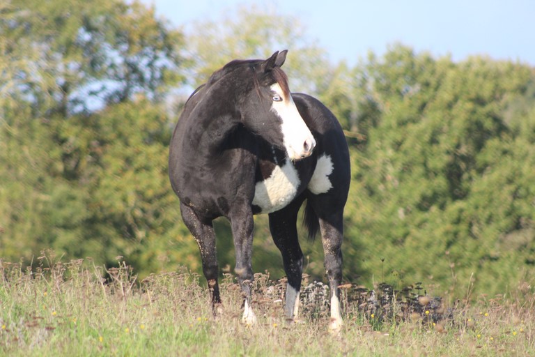 Beauty a été débourrée cette année, elle montre de belles dispositions sous la selle, de l'équilibre, du sang. Elle convient à un cavalier confirmé. Elle pratique la randonnée en groupe, la carrière et a fait un peu de Mountain Trail.