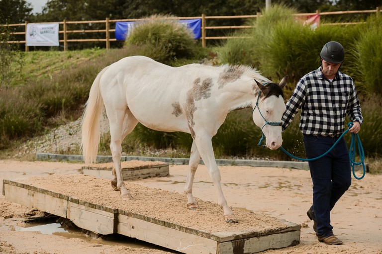 White a été débourré courant été 2024 par Kévin Butin, Les Ecuries du Corbeau à Arzal. Il reprendra le travail en 2025, priorité à sa croissance.