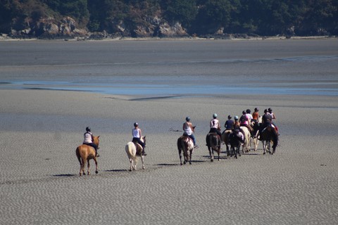 Randonnée à cheval d'une durée de 3 heures environ, en campagne et dans la baie de la Fresnaye, pour cavalier confirmé (à l'aise aux 3 allures en extérieur, capable de contrôler/diriger son cheval), enfants à partir de 10 ans et adultes. Galop 3 recommandé.
