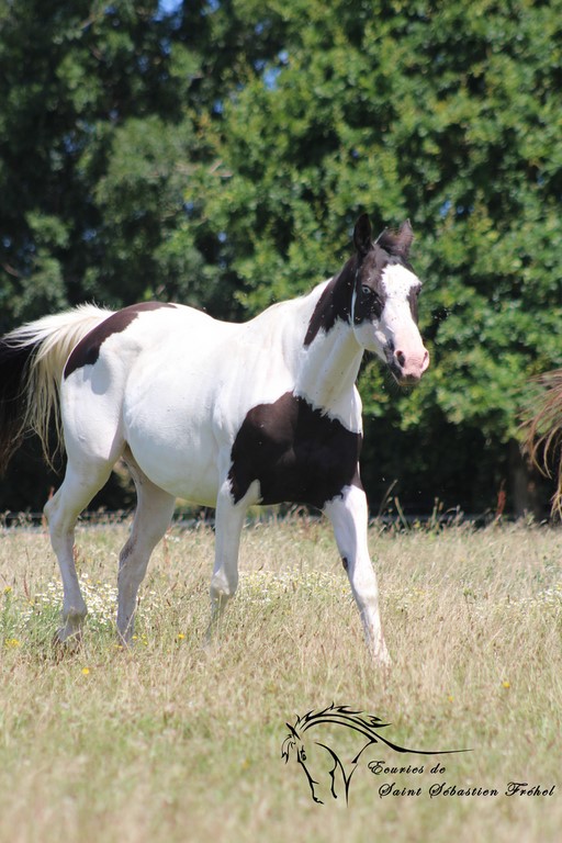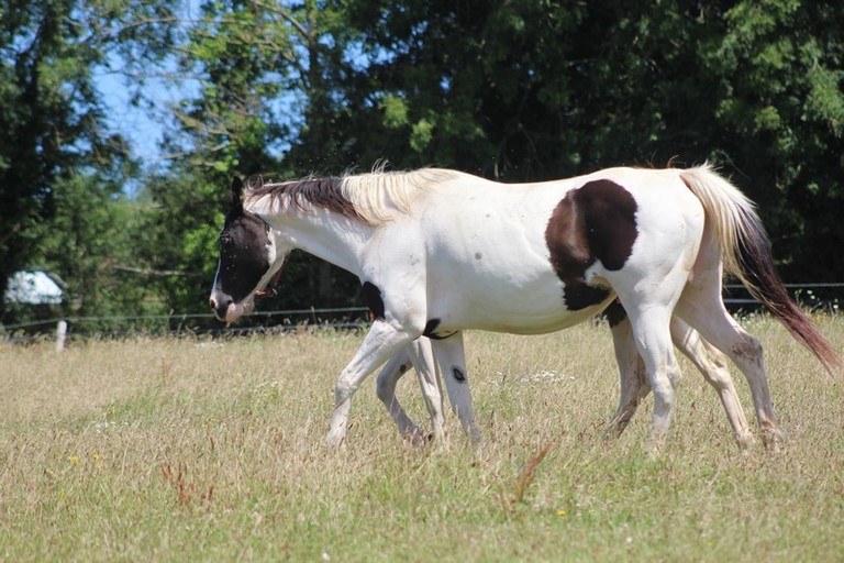 A vendre 5000€ TTC pleine ou 5300€ TTC pleine et avec 16 paillettes pour sa saillie 2024 par le même étalon ou notre étalon paint horse double homozygote élite loisir Cash Dancer Blacky.