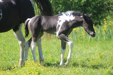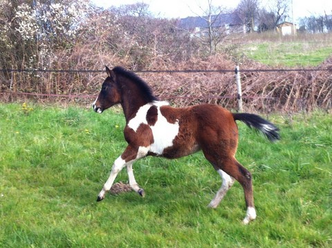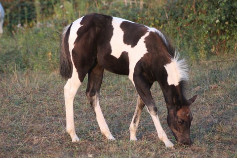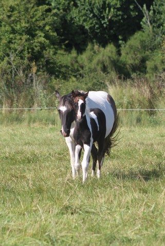 Papa d'une quarantaine de poulains (plus de 2/3 de femelles), tous ont hérité de la bonne constitution et du mental de leur papa (ceux qui ont été présentés aux épreuves loisirs les ont réussies avec brio, 2 de ses pouliches ont participé au Trophée des Elites Loisirs Junior à equitalyon en Novembre 2017 et y ont été bien classées, d'autres sortent en concours western) Certains sont homozygote black et/ou tobiano, avec les yeux bleus...