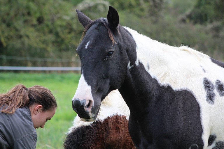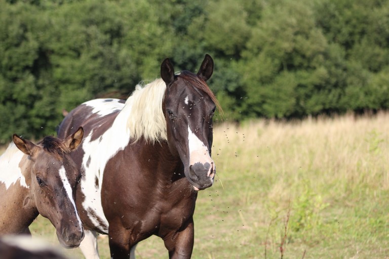 Jument très douce et facile à vivre, elle produit des poulains bien dans leurs sabots et bien faits.