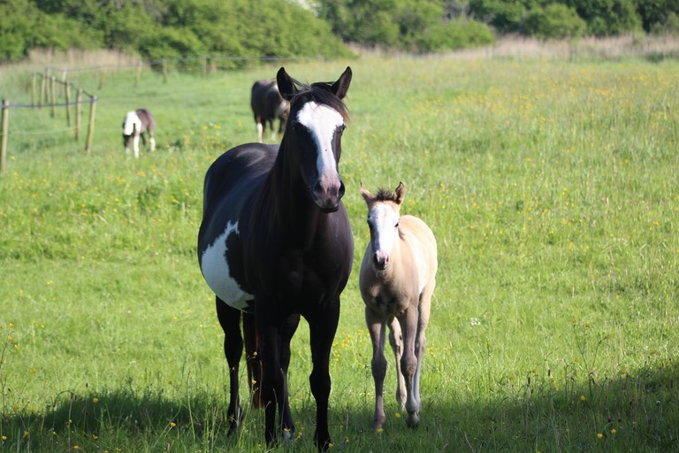 Dakota nous a gâtée en 2018 en nous offrant une magnifique pouliche grullo ovéro avec un oeil bleu, aussi câline et proche de l'homme que sa maman, Inila, qui reste chez nous.