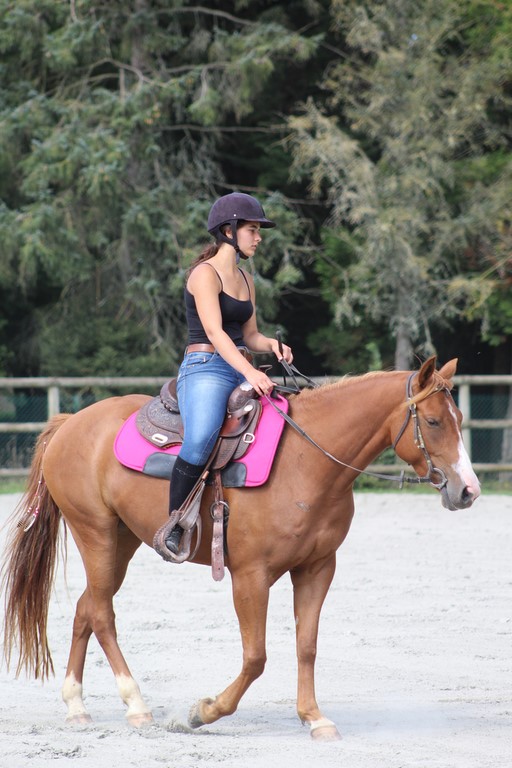 Très proche de l'homme, calme et serviable elle est adorée des petits et des plus grands! Extra en randonnée où elle passe partout comme un vieux cheval, reste froide en toutes circonstances, c'est une valeur sûre. Ekiona est montée par des débutants qu'elle met en confiance aussi bien que par des confirmés. Intelligente elle comprend vite ce qu'on attend d'elle.