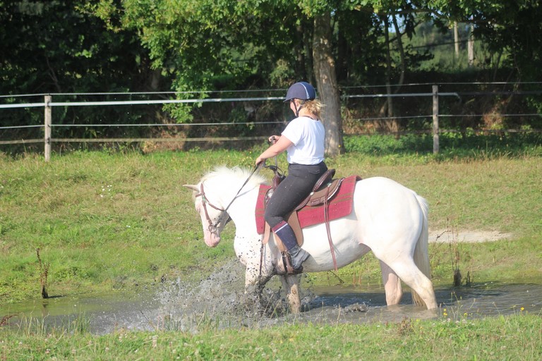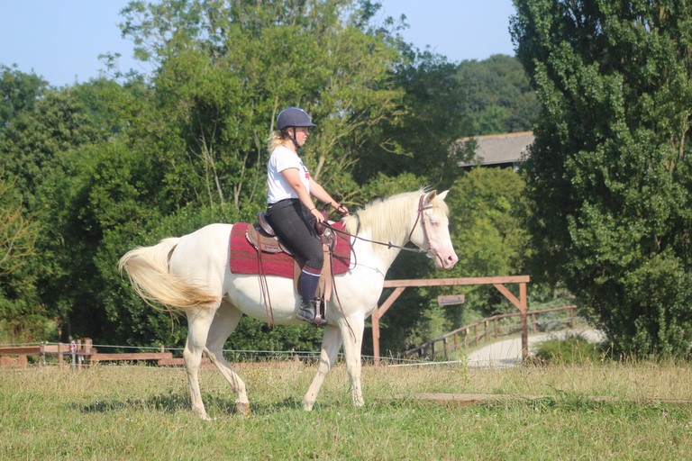 Injoy a été débourrée en 2021, elle est froide, pas peureuse du tout et très confortable.