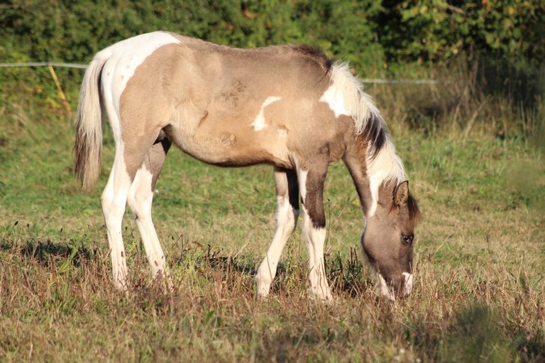 Idéal également comme futur étalon aux vues de ses origines et de son génotype, il sera l'assurance de poulains toujours tâchés, de base sombre et transmettra son gène dun (raie de mulet, zébrures, dilution de la robe) une fois sur deux.