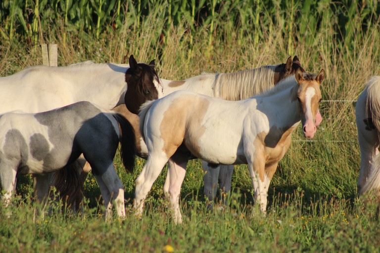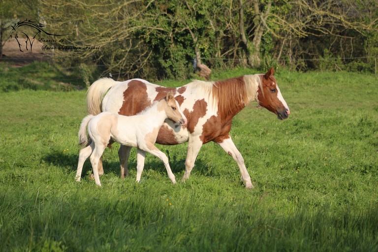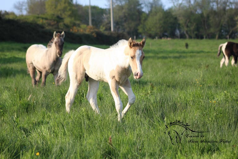 NODIN FLITZ PRIMROSE est un adorable poulain paint horse à la belle robe isabelle tobiano, avec une jolie bouille à bisous.