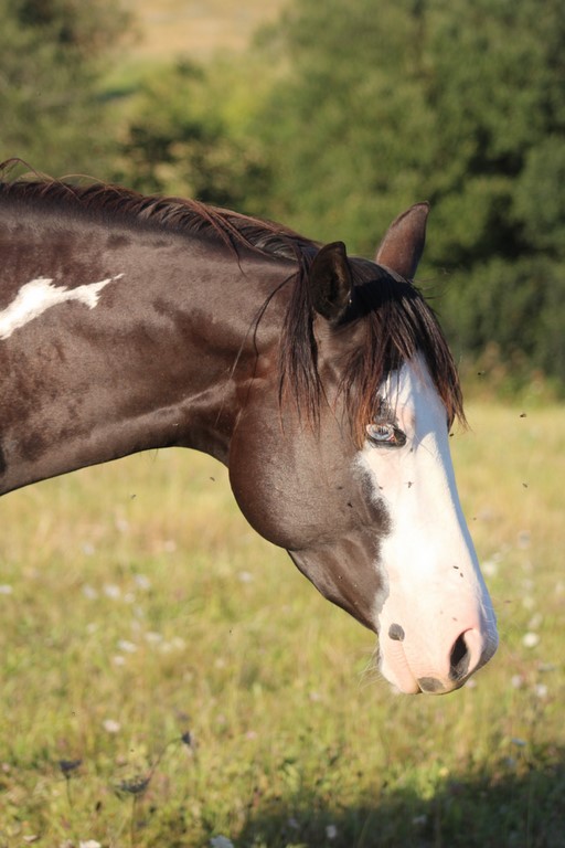 Beauty a été débourrée cette année, elle montre de belles dispositions sous la selle, de l'équilibre, du sang. Elle convient à un cavalier confirmé. Elle pratique la randonnée en groupe, la carrière et a fait un peu de Mountain Trail.