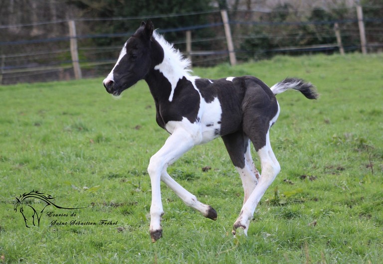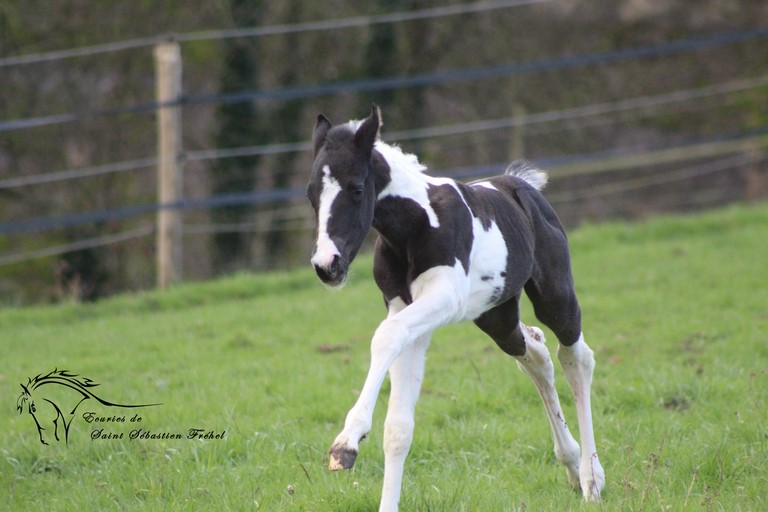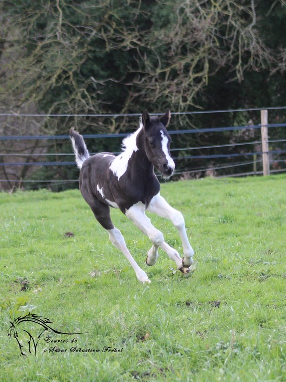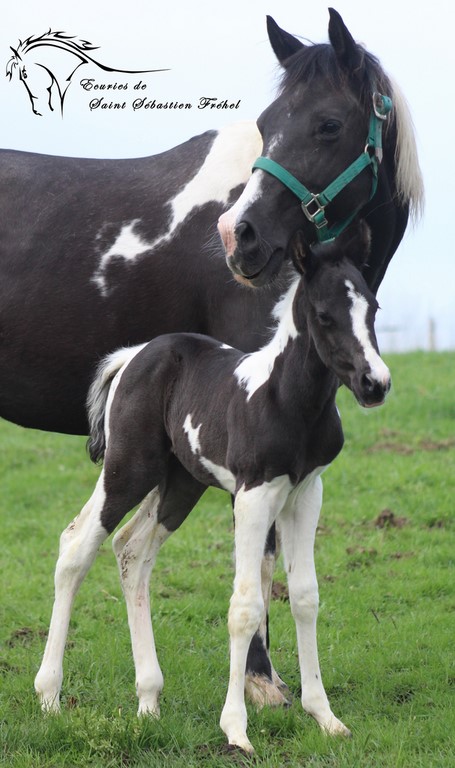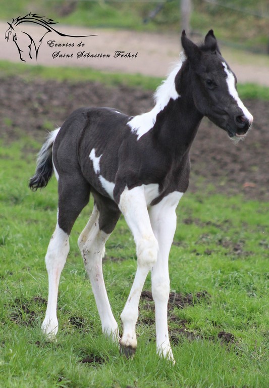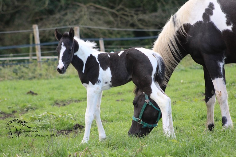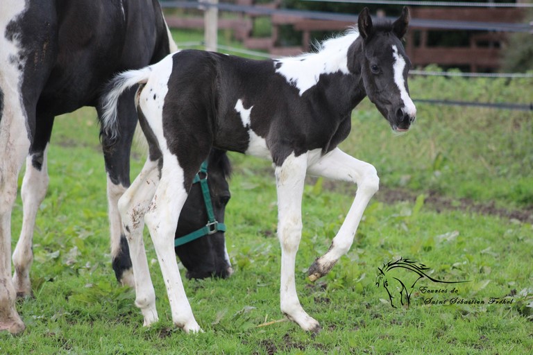 Très beau poulain paint horse plein papiers france et USA né le 24 janvier 2023, double homozygote pour les gènes black et tobiano et négatif au panel 6. Issu de CASH DANCER BLACKY, étalon paint horse au mental extraordinaire, élite loisir sous la selle, terriblement polyvalent (du CSO au travail du bétail, en passant par le TREC, la rando, le mountain trail… rien ne lui fait peur!)sortie en compétition dans plusieurs disciplines, père de nombreux poulains à qui il a légué ses qualités ; et de MAORI LADY GHOST, adorable jument paint horse assurance-vie en extérieur, peur de rien, facile à monter pour tous niveaux, adorée des plus jeunes et vice-championne de France des Elites Loisir... Déjà bien dégourdi il n'est pas peureux et vadrouille à la découverte du monde (au grand dam de sa maman!) Sera sans nul doute un futur partenaire extraordinaire, à qui la chance? IL sera vendu bien manipulé (comme tous nos poulains), primo-vacciné, avec ses papiers en ordre.