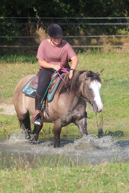 Inila est une très belle pouliche grullo ovéro avec un oeil bleu, née chez nous en 2018, fille de Dakota Black Primrose (née chez nous également) et notre ancien étalon QTS Pepsi Light. Très féminine elle ne laisse pas indifférent quiconque croise son regard. Bien faite, avec du crin et des marques primitives bien visibles, Inila est le genre de cheval que nous souhaitons produire. inila est bien faite avec un dos bien tendu. Dotée d'un caractère très proche de l'homme, elle aime que l'on s'occupe d'elle.